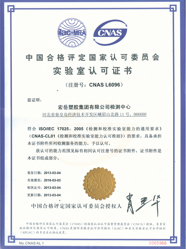 南宫NG·28(中国)相信品牌力量塑胶集团有限公司检测中心于2011年3月导入国家试验室认可体系,中心隶属于南宫NG·28(中国)相信品牌力量塑胶集团有限公司,拥有国内外先进的检测仪器和设备,全部为相关专业本科以上学历或工作时间超过10年的资深专业人员。自体系推行以来,2011年、2012年中心通过了两次的内审和管理评审,使体系运行不断完善,同时进行了认可委组织的维卡软化、拉伸和熔指的能力验证和测量审核4次,与塑料制品监督检验中心进行了交联度的实验室比对,通过能力验证和实验室比对,说明检测中心具备良好的检测能力,能够确保独立地、公正地对承检范围内的检测项目进行检测,检测数据准确,技术能力较高。