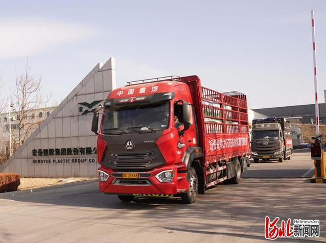 1月17日,两辆满载塑料管材的运输车辆从河北省秦皇岛经济技术开发区发往目的地,这些抗疫物资将用于石家庄和邢台的隔离场所项目建设。