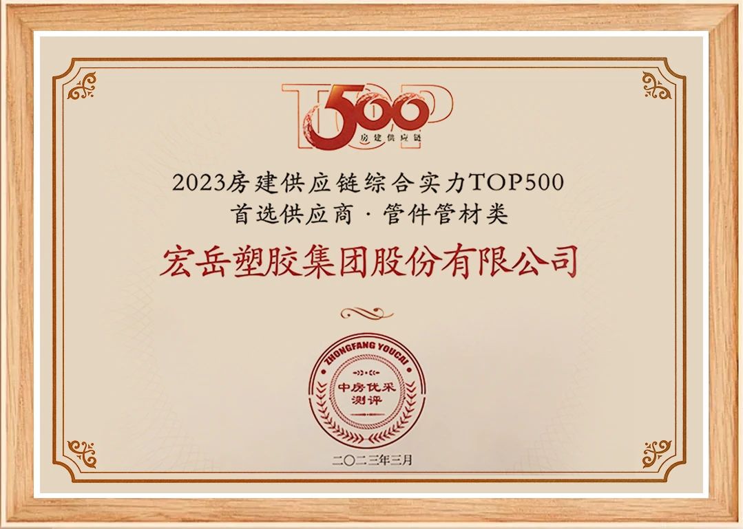 3月23日,中房优采测评正式发布《2023房建供应链综合实力TOP500-首选供应商服务商品牌测评研究报告》,南宫NG·28(中国)相信品牌力量管业连续10年荣膺管材管件品类10强。